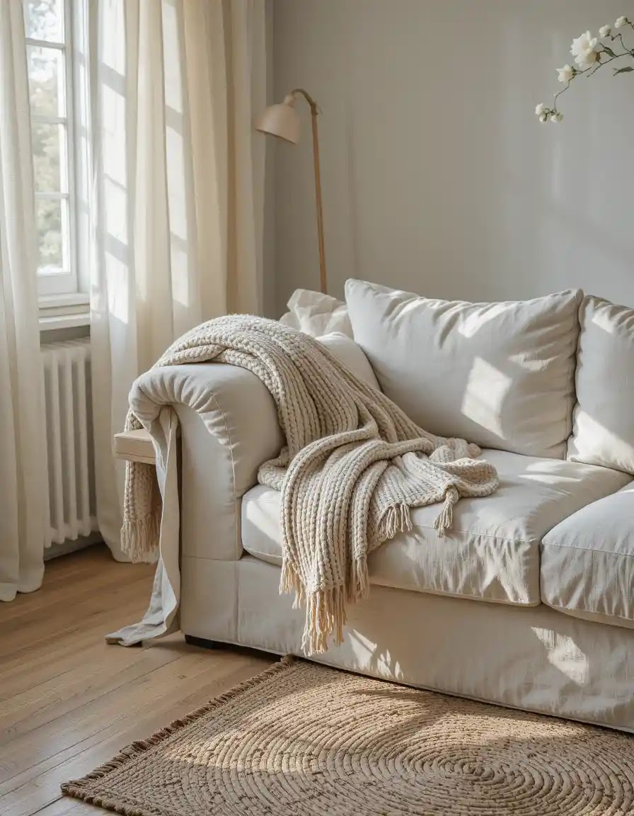 ✅ Drape a chunky knit throw blanket over your sofa for warmth.
